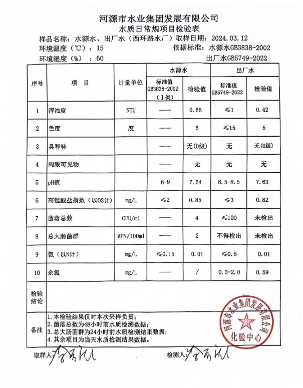2024年3月12日水質(zhì)檢驗(yàn)報告 ???
