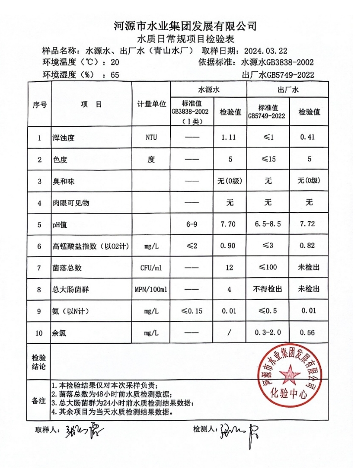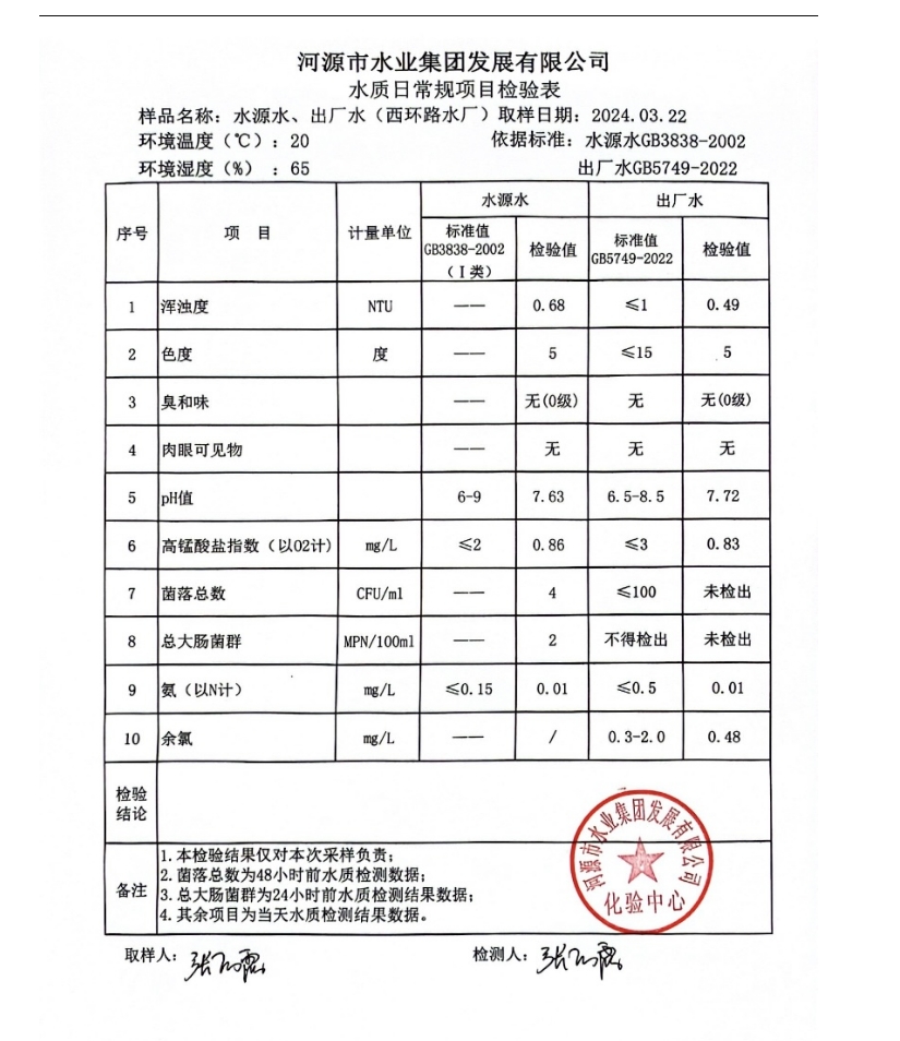 2024年3月22日水質(zhì)檢驗(yàn)報(bào)告