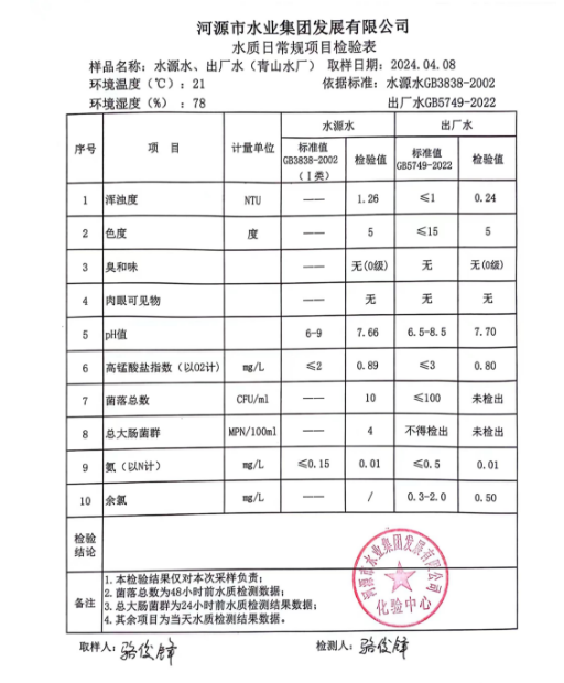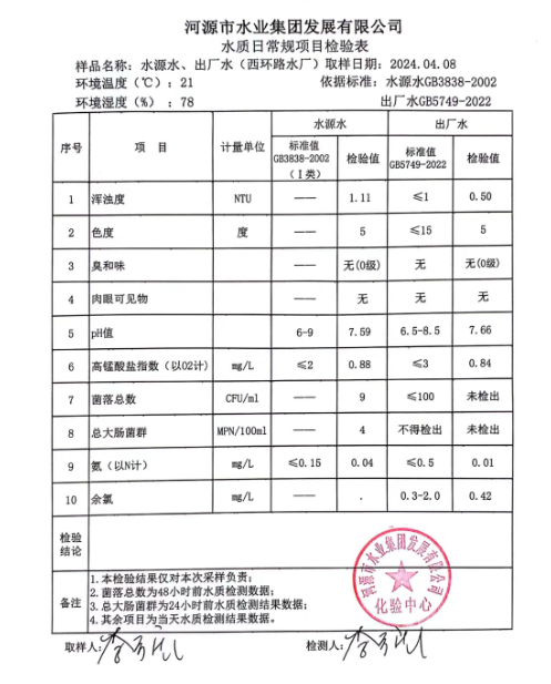 2024年4月8日水質(zhì)檢驗報告
