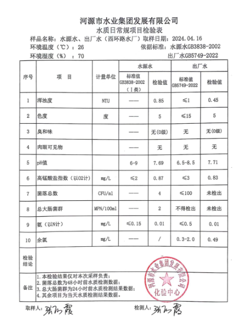 2024年4月16日水質(zhì)檢驗(yàn)報(bào)告