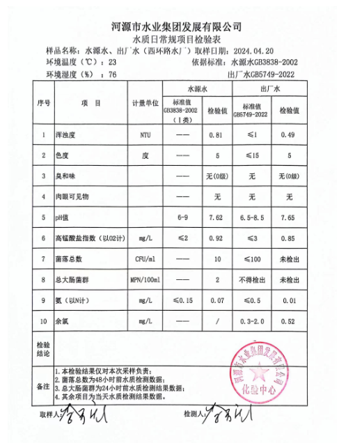 2024年4月20日水質(zhì)檢驗(yàn)報(bào)告
