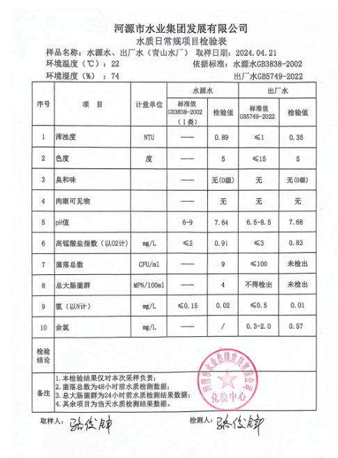 2024年4月21日水質(zhì)檢驗(yàn)報(bào)告