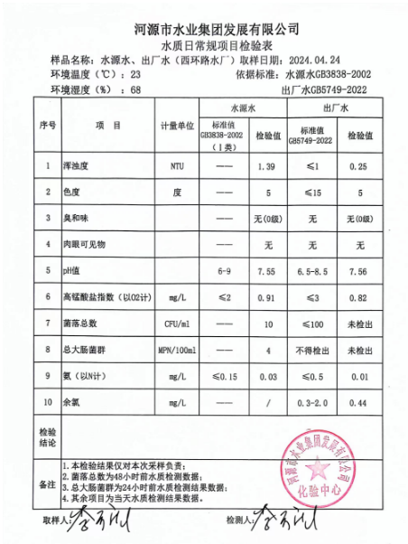2024年4月24日水質(zhì)檢驗(yàn)報(bào)告 ???