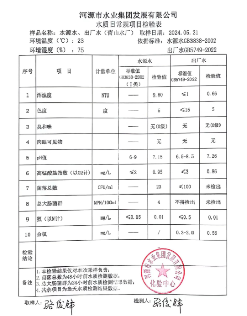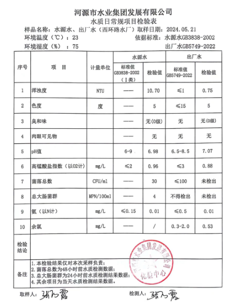 2024年5月21日水質(zhì)檢驗(yàn)報(bào)告 ???