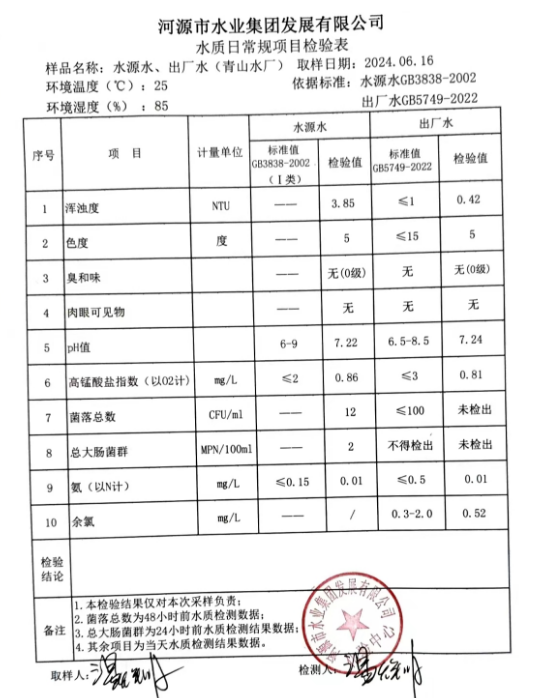 2024年6月16日水質(zhì)檢驗(yàn)報(bào)告