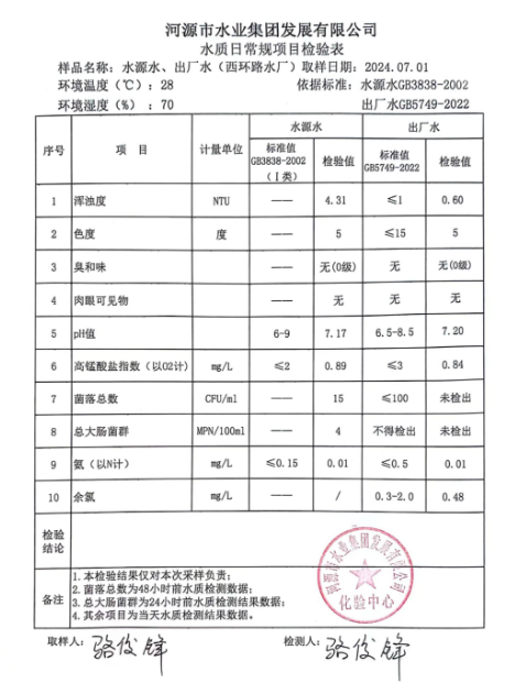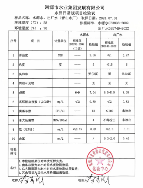 2024年7月1日水質(zhì)檢驗(yàn)報(bào)告