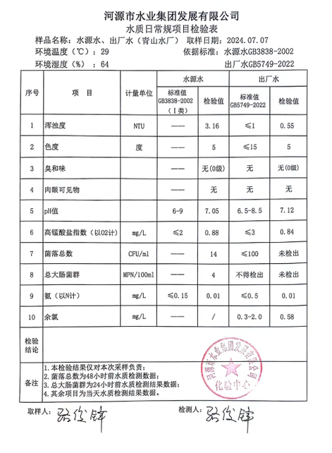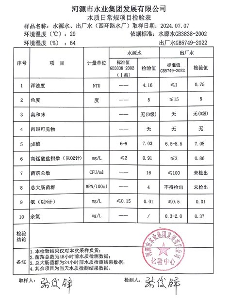 2024年7月7日水質(zhì)檢驗(yàn)報(bào)告