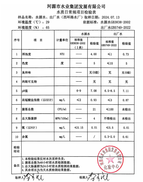 2024年7月13日水質(zhì)檢驗報告