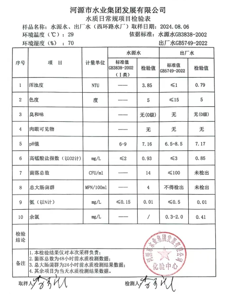 2024年8月6日水質(zhì)檢驗(yàn)報(bào)告