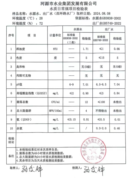 2024年8月8日水質(zhì)檢驗(yàn)報(bào)告