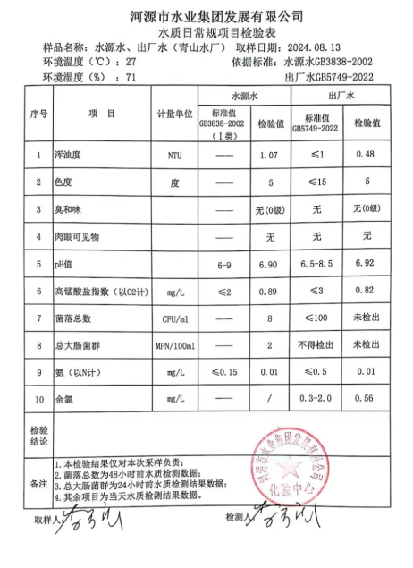2024年8月13日水質(zhì)檢驗(yàn)報(bào)告