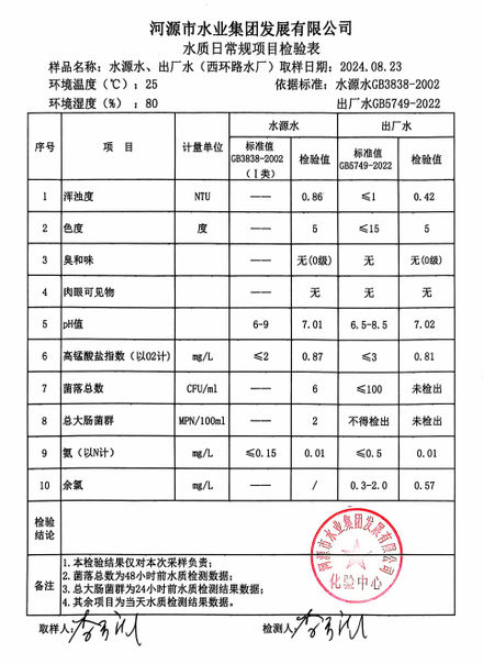 2024年8月23日水質檢驗報告