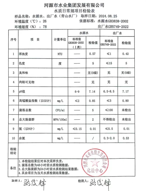 2024年8月25日水質(zhì)檢驗(yàn)報(bào)告