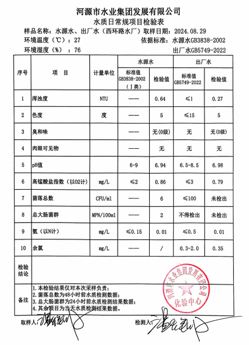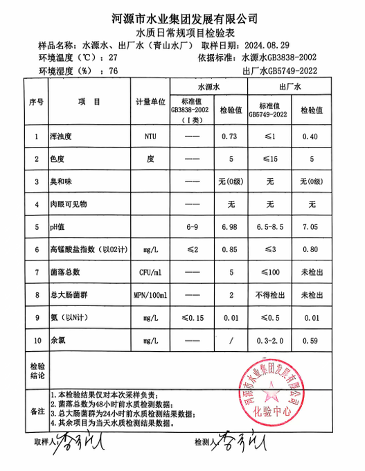 2024年8月29日水質(zhì)檢驗(yàn)報(bào)告