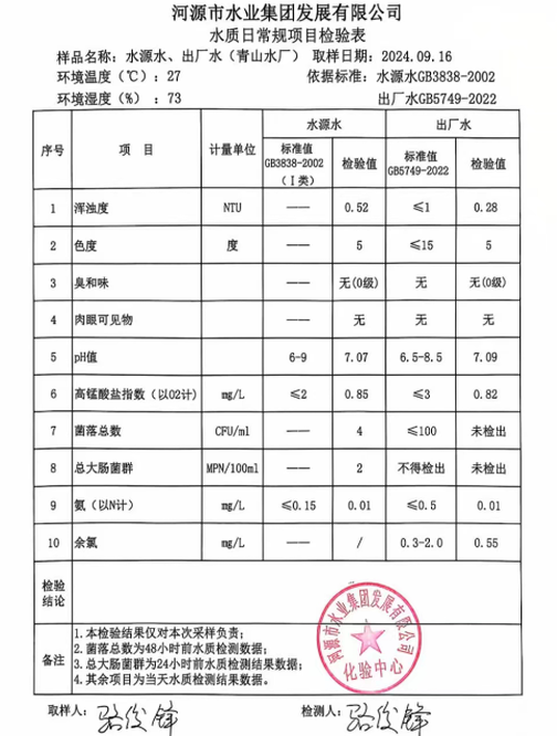 2024年9月16日水質(zhì)檢驗(yàn)報(bào)告