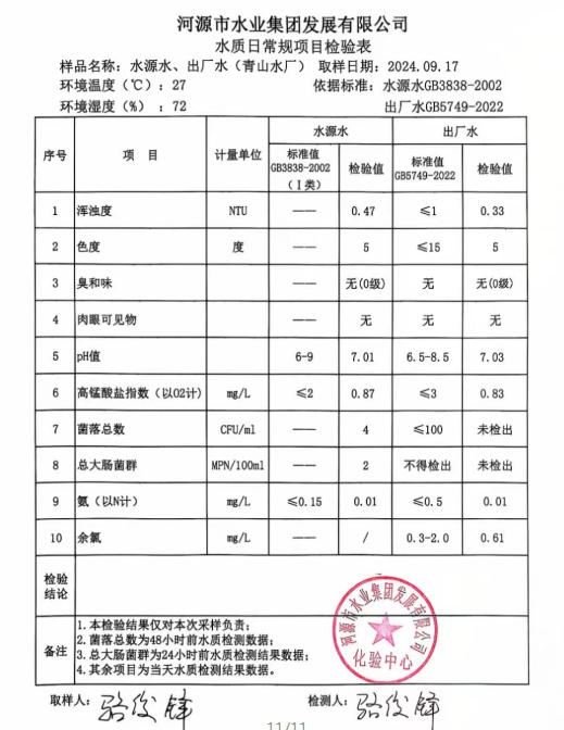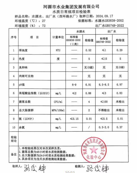 2024年9月17日水質檢驗報告