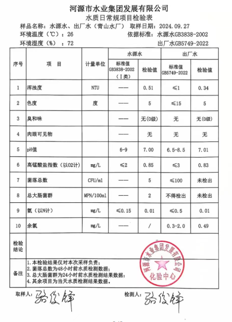 2024年9月27日水質(zhì)檢驗報告